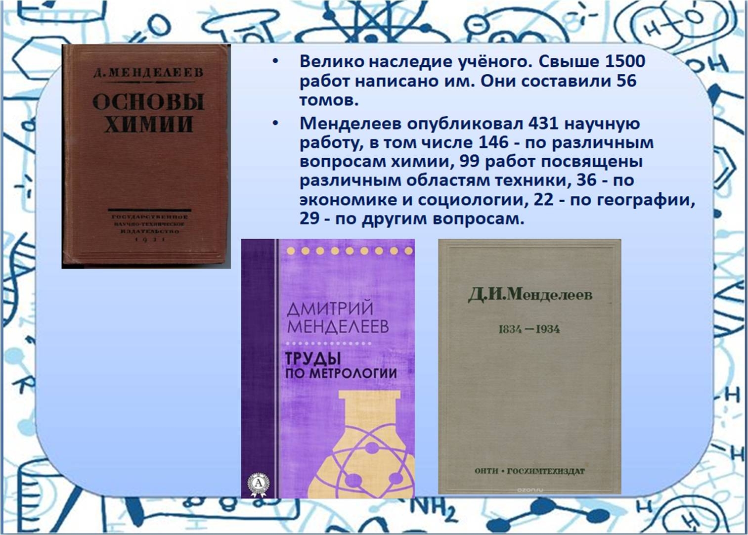 Многим Д.И. Менделеев знаком, как автор периодического системы химических элементов, но его научные интересы были гораздо шире.
