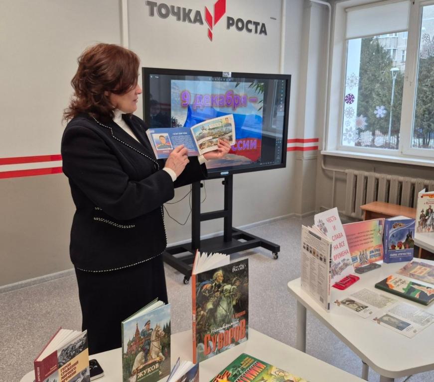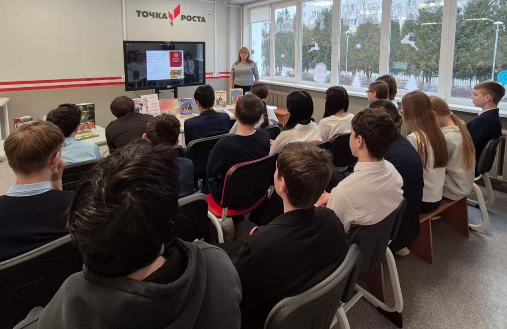 Во время занятия ребята узнали историю праздника, познакомились с подвигами выдающихся соотечественников, получили представление о роли личного вклада каждого гражданина в судьбу своей страны. Урок сопровождался презентацией и рассказами библиотекарей о великих событиях Отечественной истории.